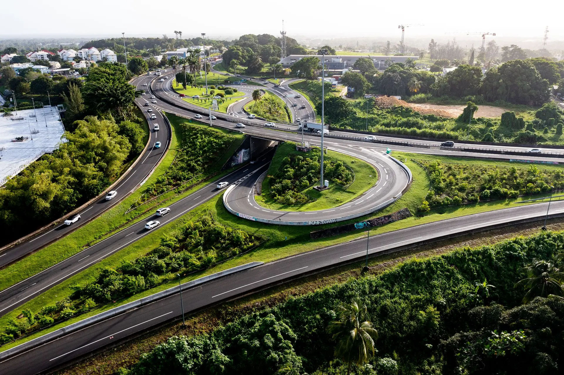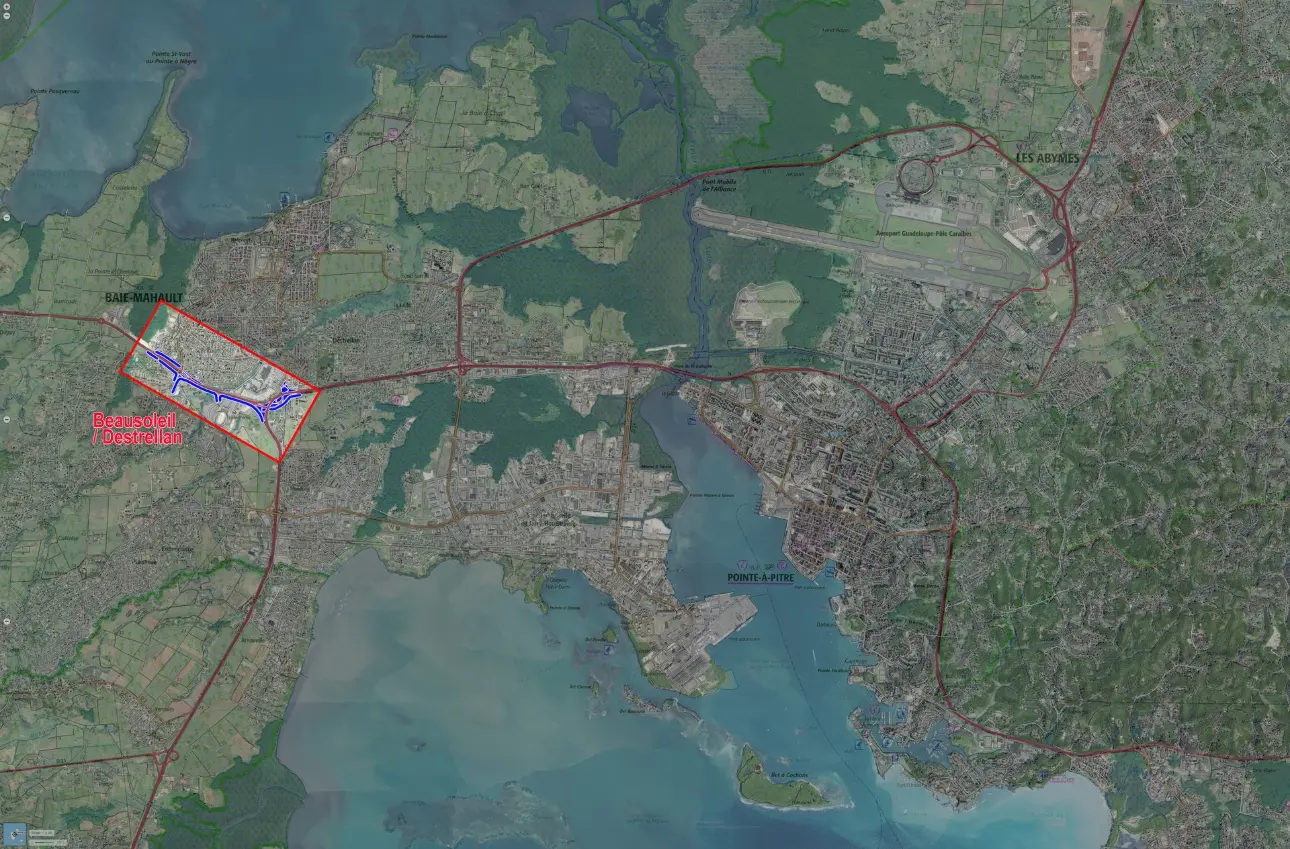 Le projet de trame verte routière (TVR) entre Beausoleil et Destrellan n’est pas un projet isolé : il s’inscrit dans une démarche qui concerne aussi deux autres séquences du réseau routier régional, dans l’optique de recréer une continuité écologique en bord de route depuis la forêt marécageuse de Beausoleil jusqu’à l’échangeur de Providence (les Abymes), à l’Est de l’aéroport :